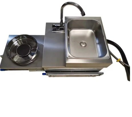 • تصميم مدمج وعملي: يجمع بين حوض لغسيل الأطباق وموقد للطهي في وحدة واحدة، مما يوفر المساحة ويجعل التنظيم سهلاً.