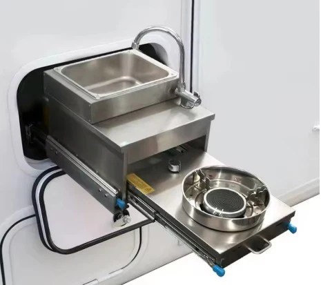 الوظيفة: حوض، موقد، صنبور: مزود بحوض وموقد وصنبور، ليكون حلاً متكاملاً للطهي أثناء التنقل.